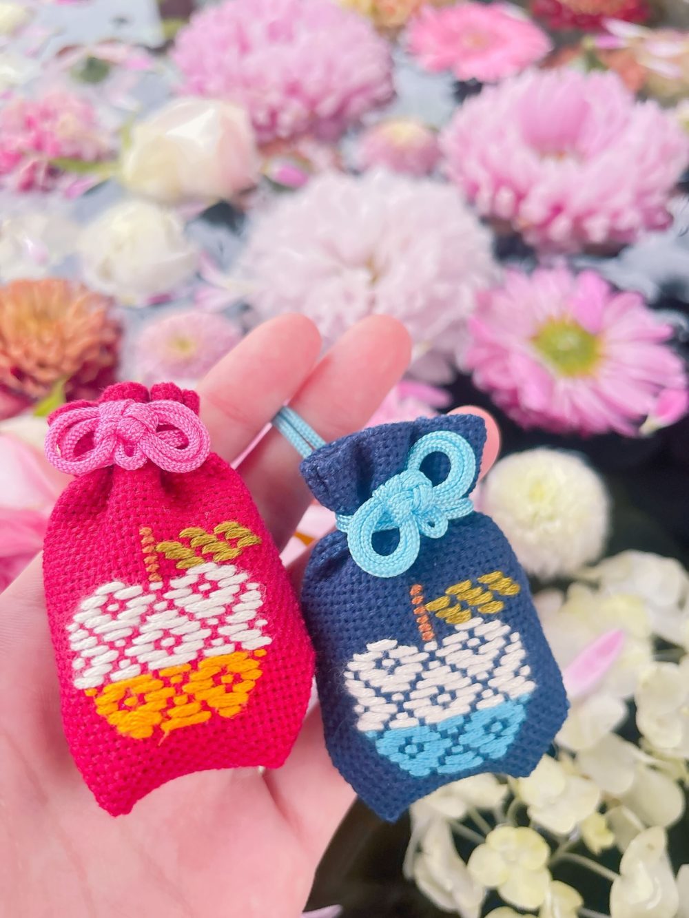 こちらのお守りは、青森市で活動されている福祉事業所内利用者の方々に伝統工芸である「こぎん刺し」で奉製していただいたお守りです。