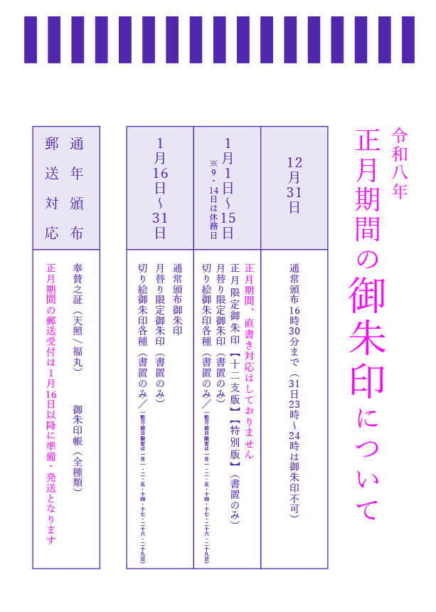 授与期間 1月1日(元旦)~1月15日 ※9、14日は休務日